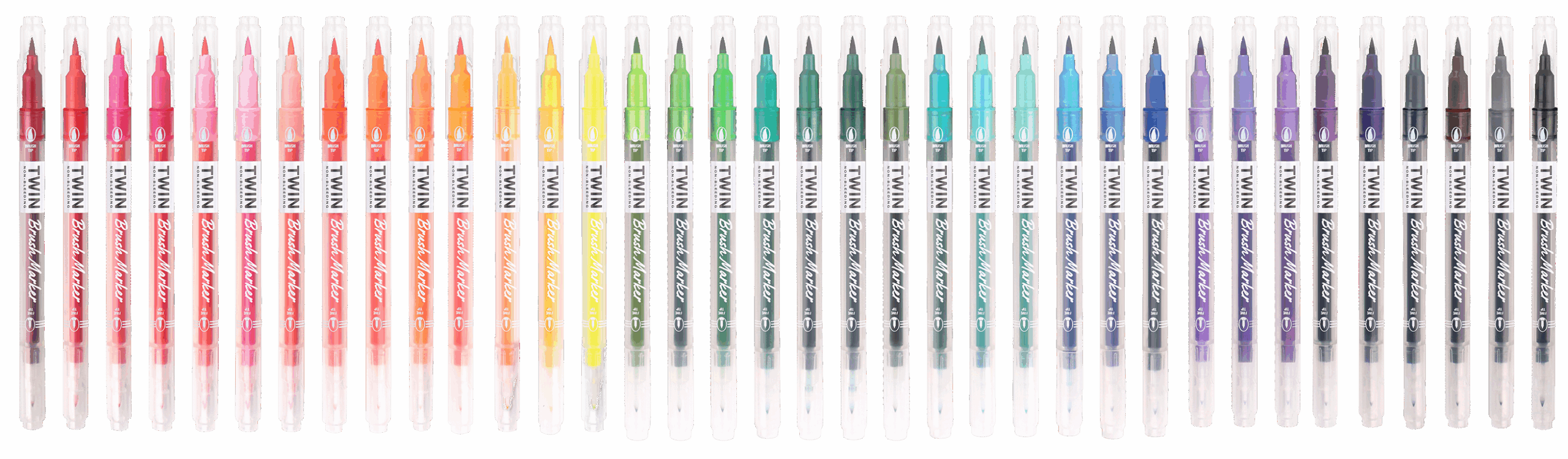 Rotulador doble punta con tinta a base de agua. Una punta de pincel y otra fina de 0,4mm.